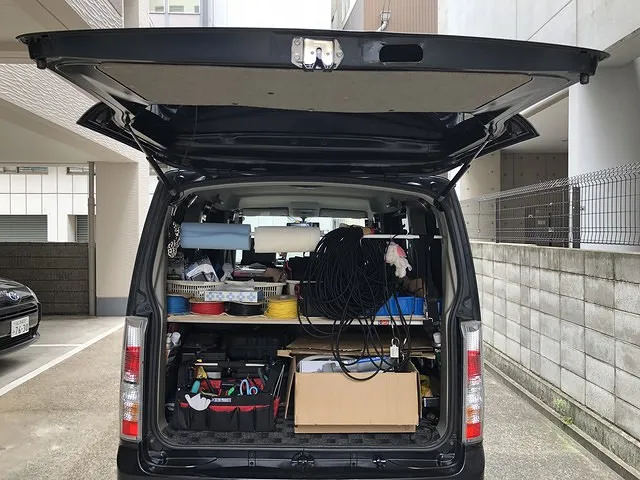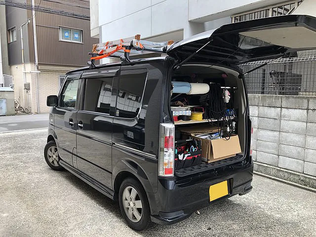 当店では全国のお客様に対応できるよう出張カーを3台完備。電装パーツの取付に必要な機材をすべて取り揃えているので、出張先でも工場と変わらない取付作業ができます。