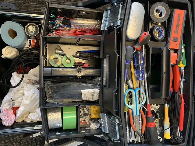 TCIサービス トラサポくんでは、高所作業専用の特殊な脚立や電装パーツ専用機材を多数完備。