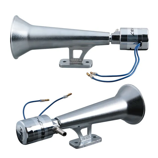 ユーロトラックの定番中の定番商品が進化。異質なサウンドを奏でるエアホーン。小型なボディに似合わず大音量。本体がアルミで丈夫な作りで取付ブラケットを一体化。24V車用。低電流仕様。近年おすすめの商品№1