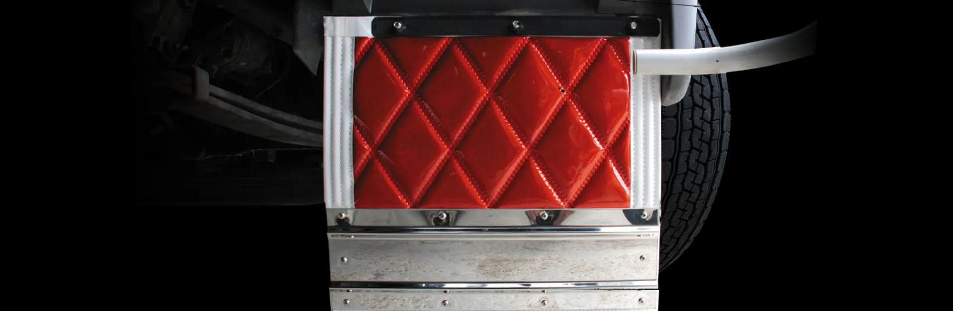 定番商品の泥除け用ステンレス鏡面板の厚みを0.8mmから1.2mmに強度を上げてリリース。走行時における泥除けのバタ付きを抑えつつ鮮やかに飾る鏡面仕上げのステンレス板は、車両後方イメージをガラリと変えます。