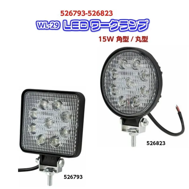 【WL-29 LEDワークランプ15W角型 526793WL-30 LEDワークランプ15W丸型 526823を購入する】