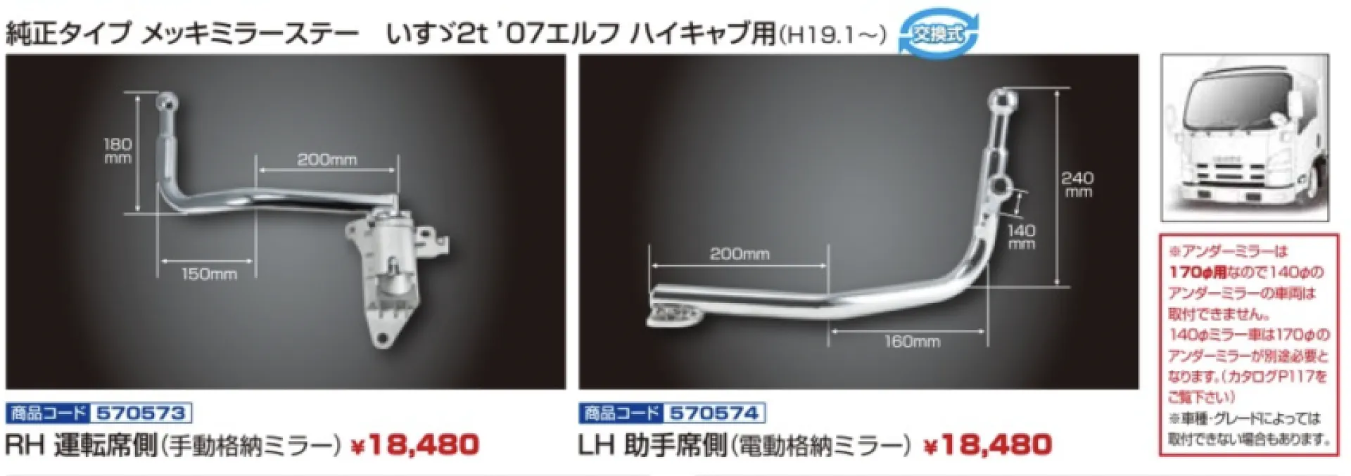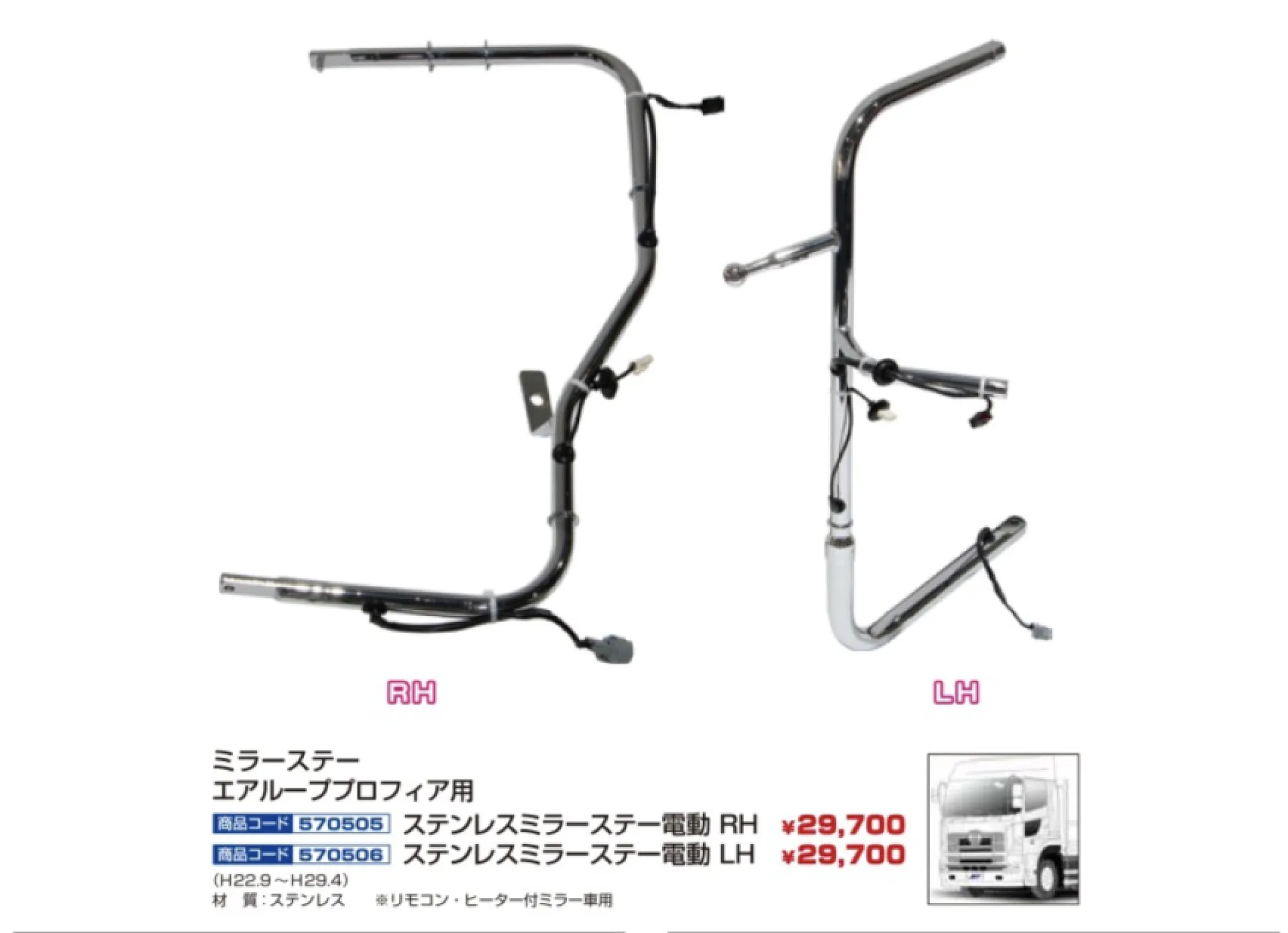 大阪市トラック 純正タイプメッキミラーステー