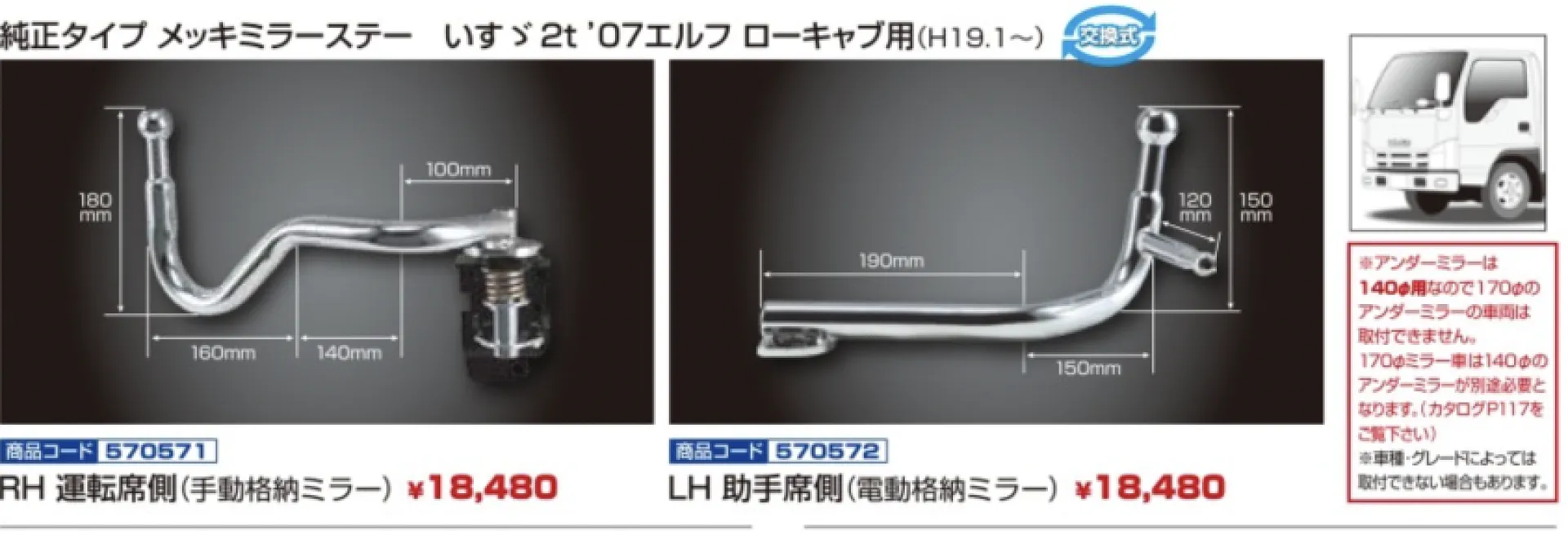 大阪市淀川区 大阪市トラック 純正タイプメッキミラーステー TCIサービス