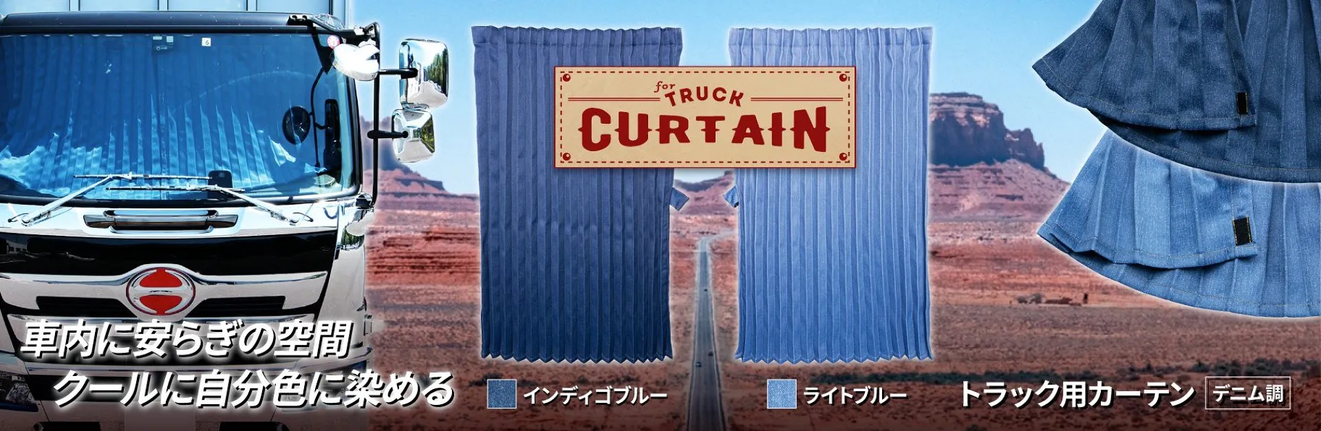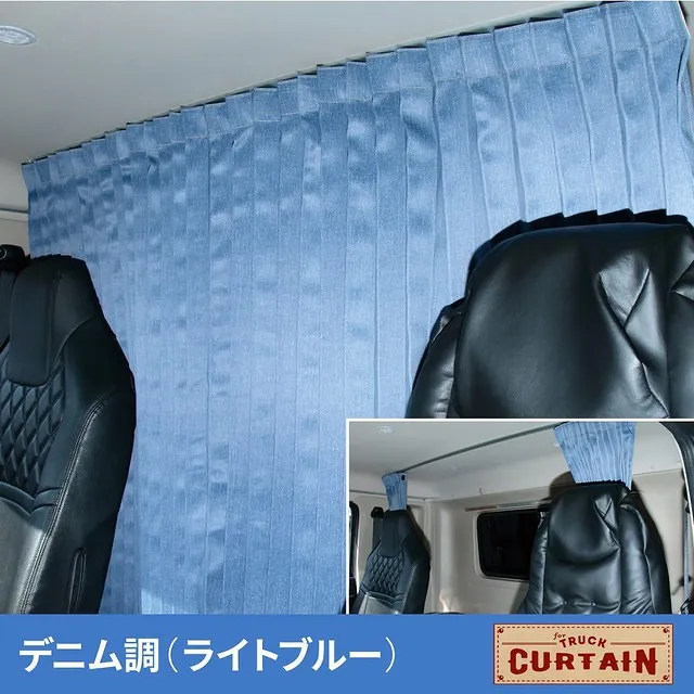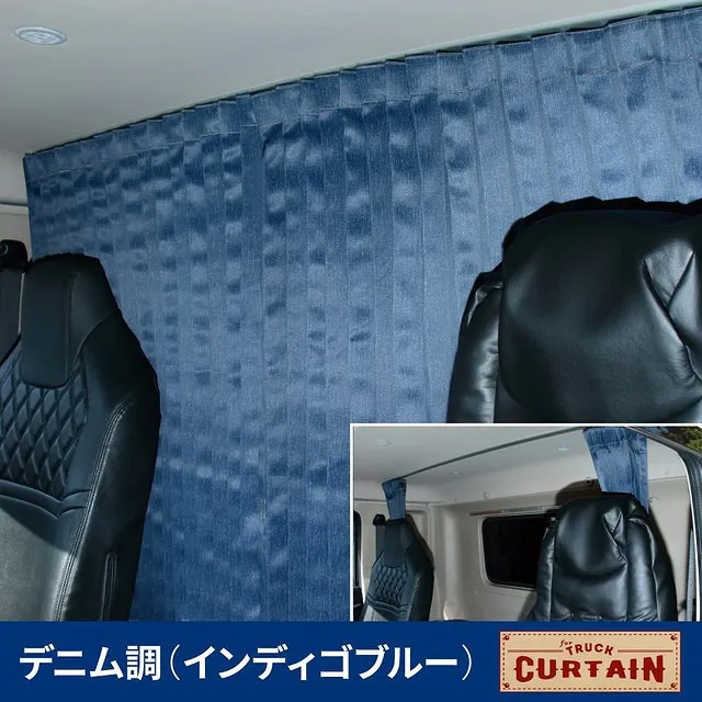 トラック用カーテン(仮眠カーテン・センターカーテン・サイド&リヤベットカーテン)に新シリーズにデニム調生地が誕生。定番的なカーテン柄ではなくクールにラフにオシャレを演出。遮光率99.9%。アコーディオン式。濃い目の「インディゴブルー」、ソフトな「ライトブルー」の2色をご用意。