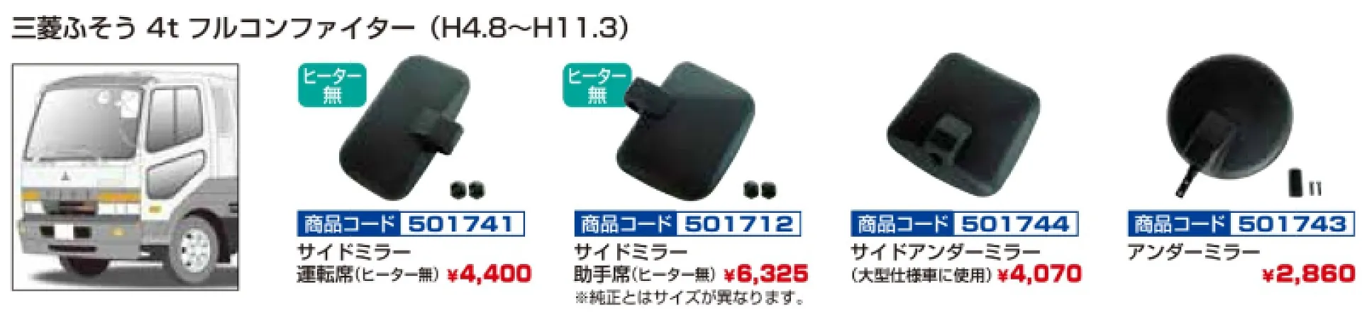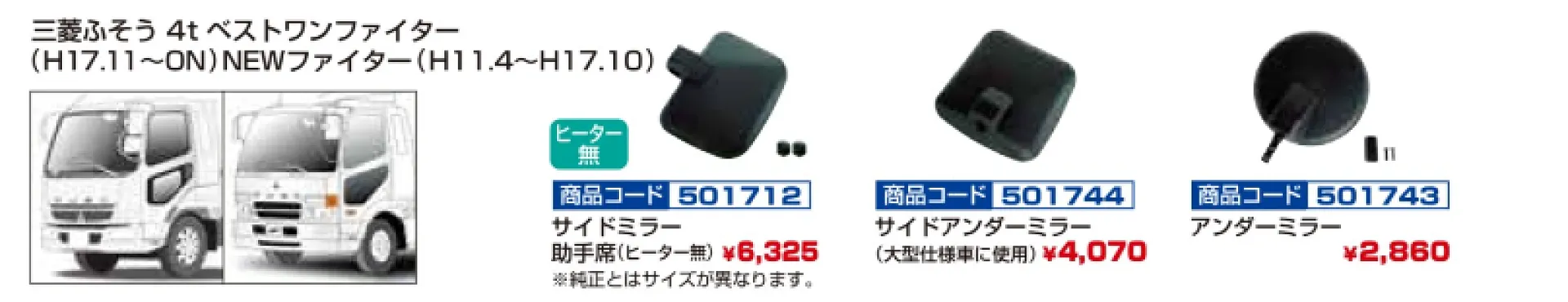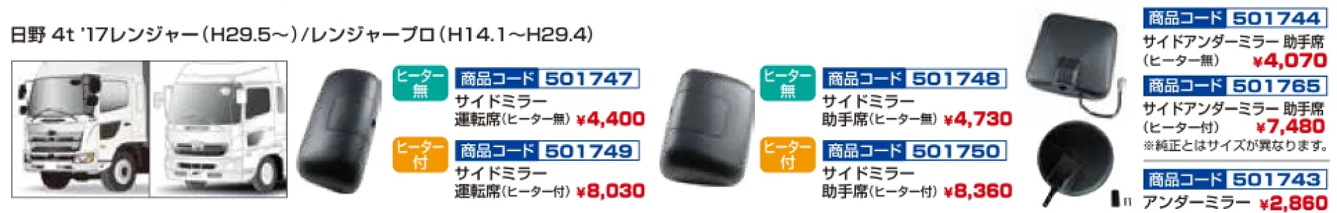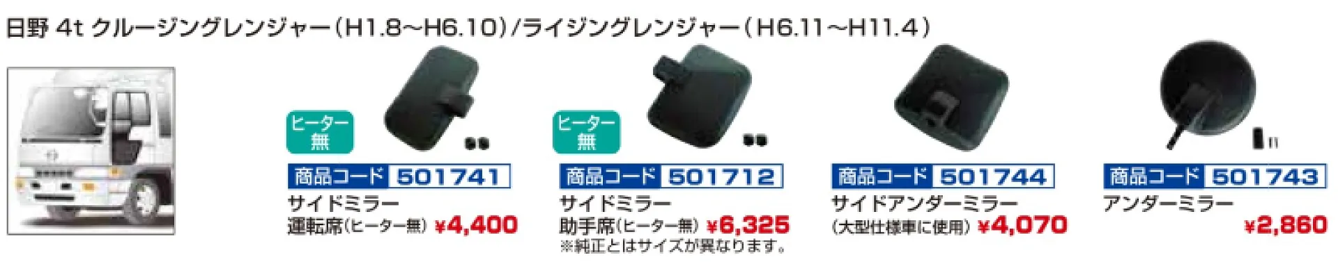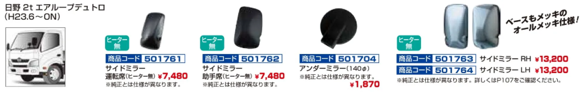 純正タイプミラー 日野2tデュトロ メッキVer 501763-501764