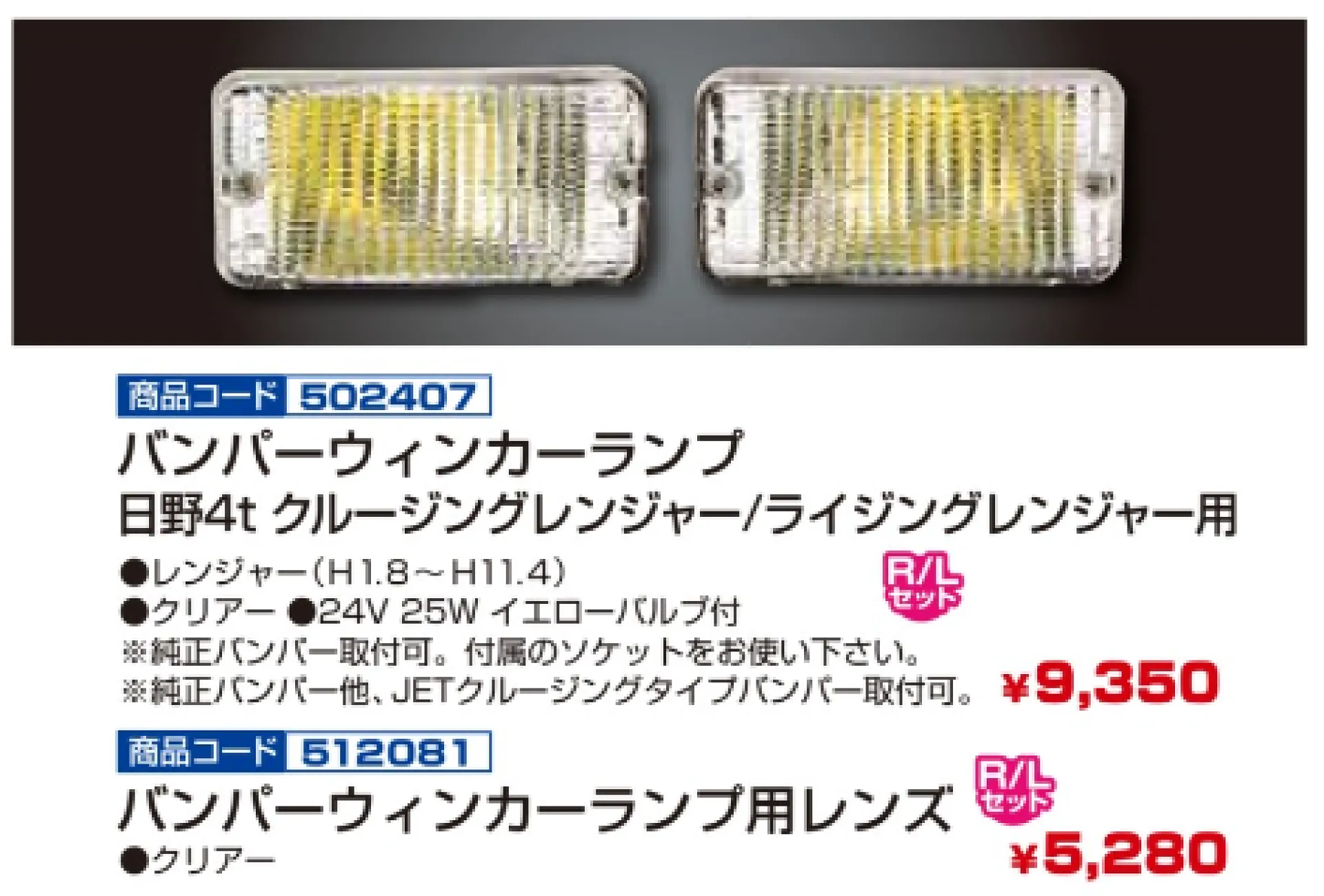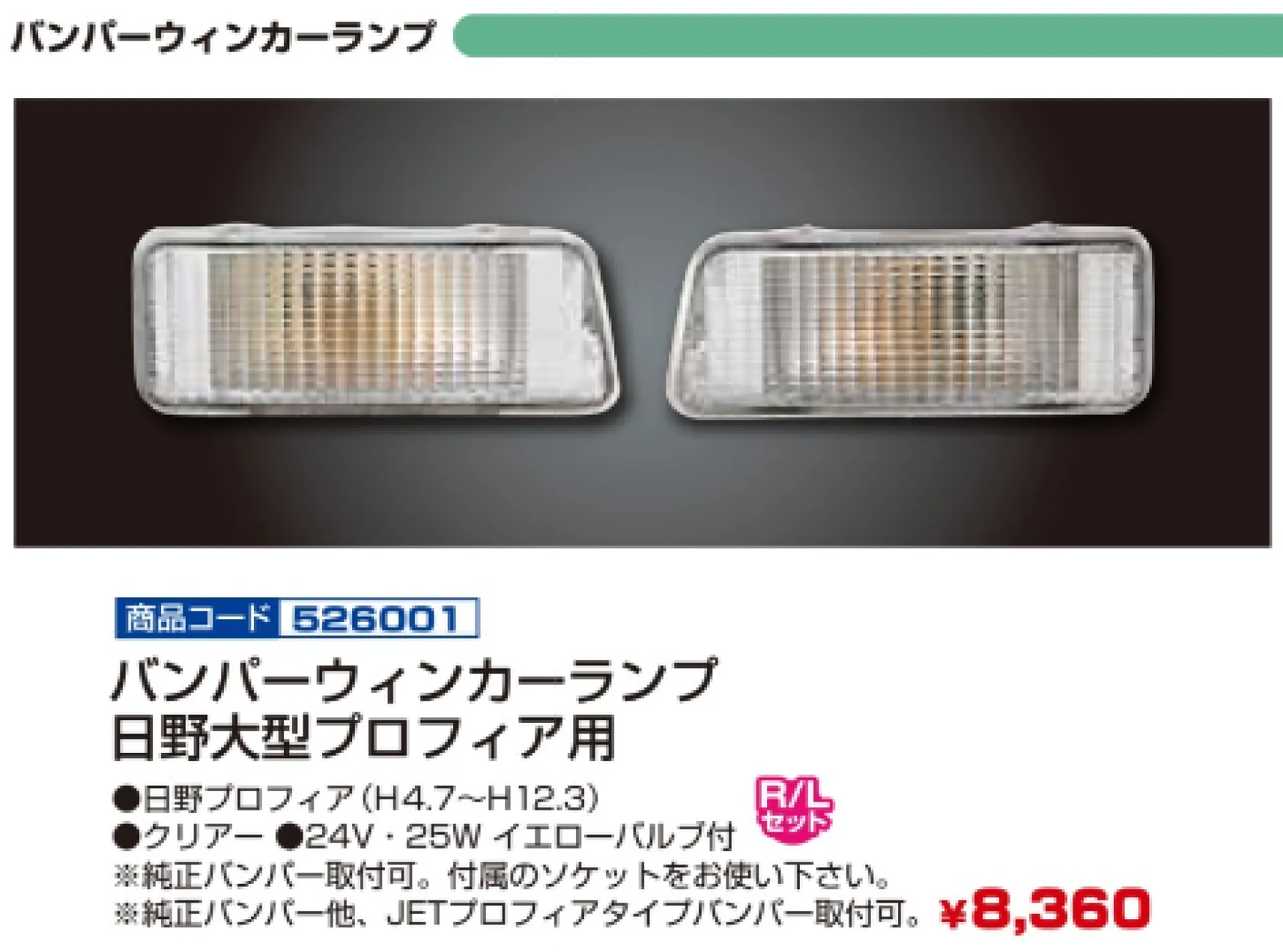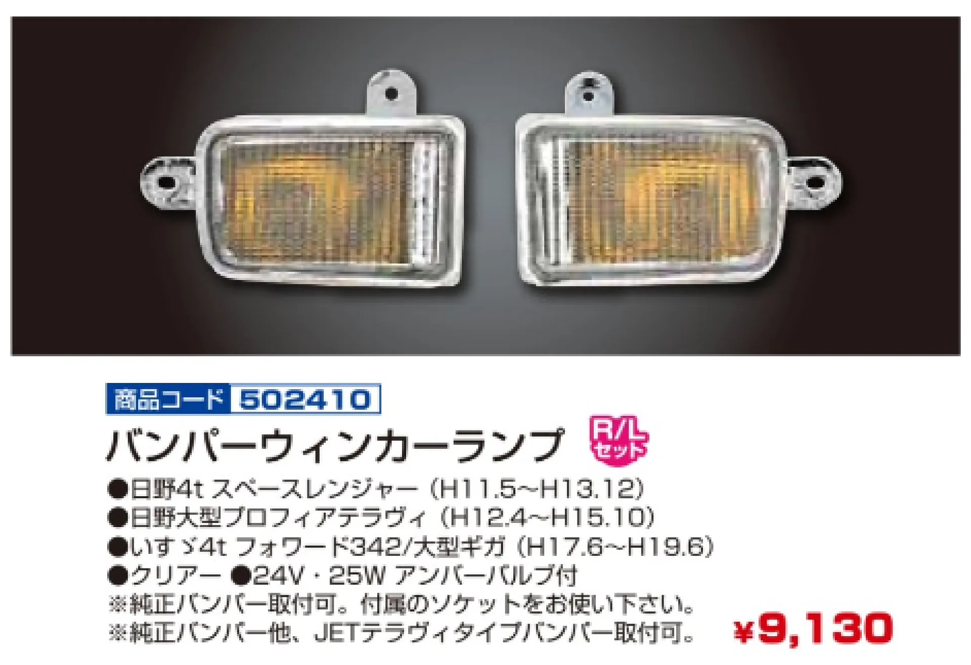 プロフィアテラヴィタイプバンパー 4t車~大型車用 ウィンカーランプ R/Lセット 502410
