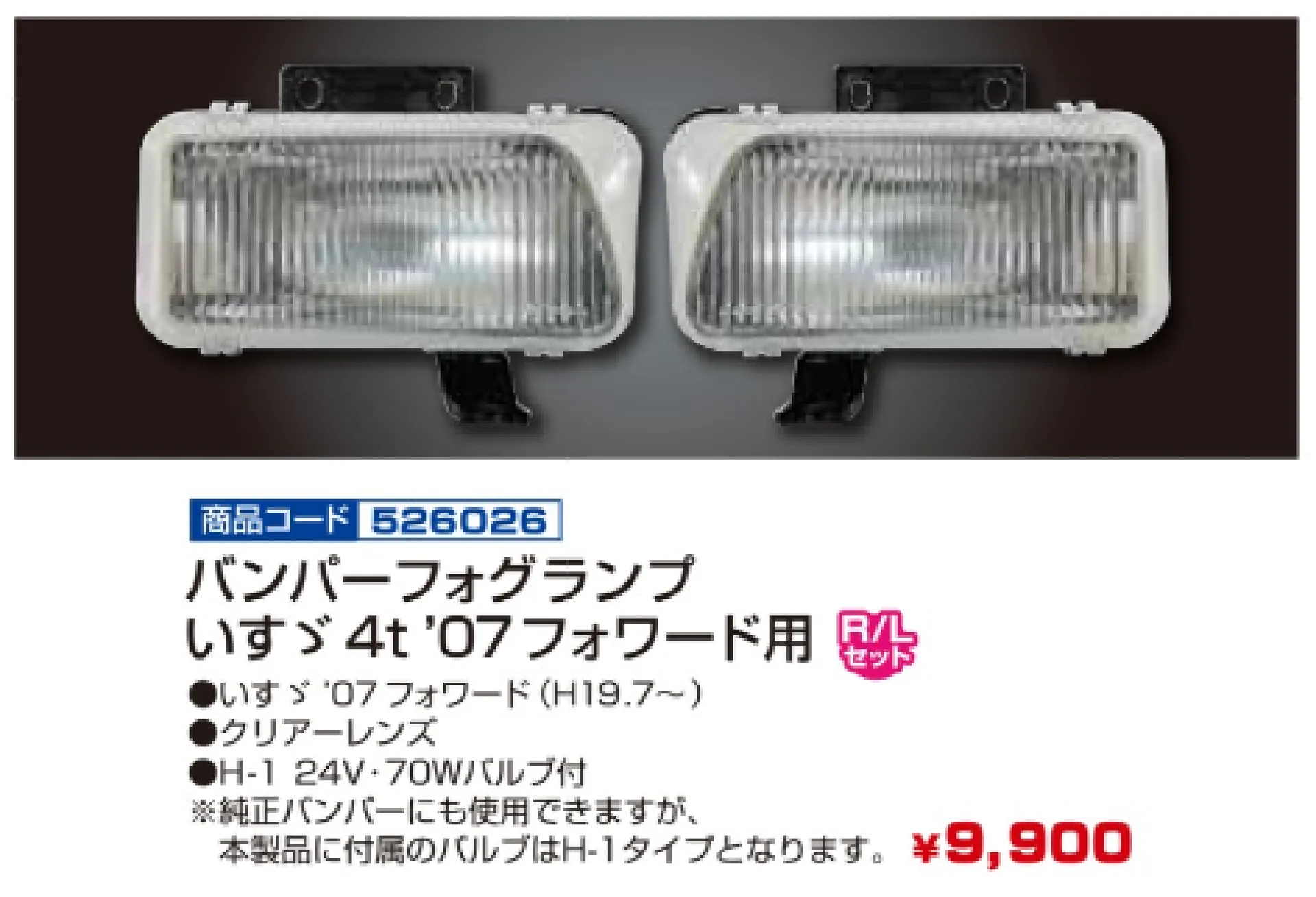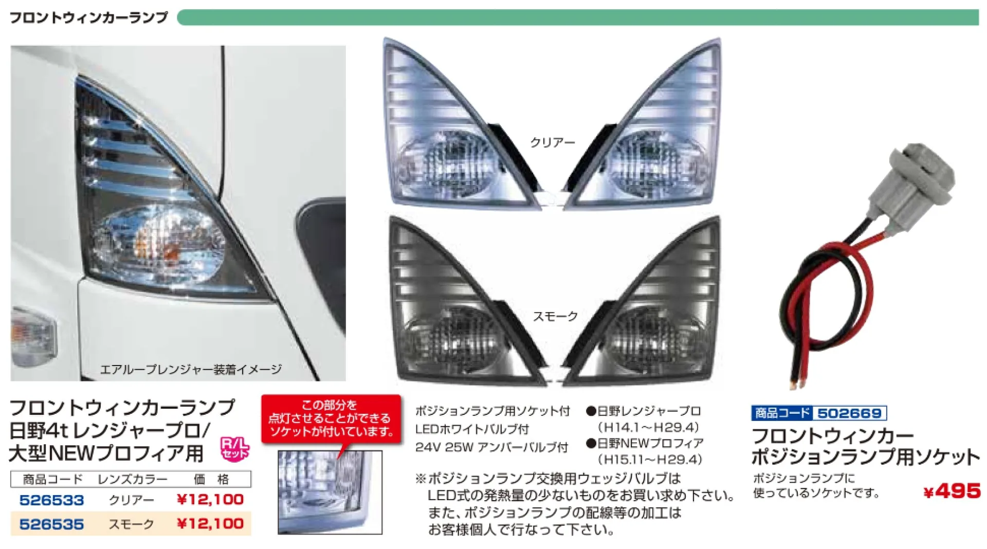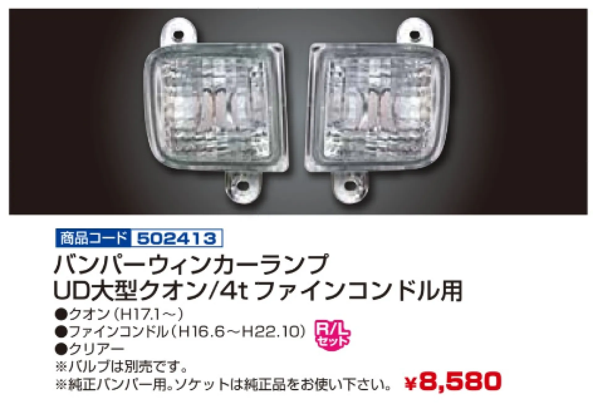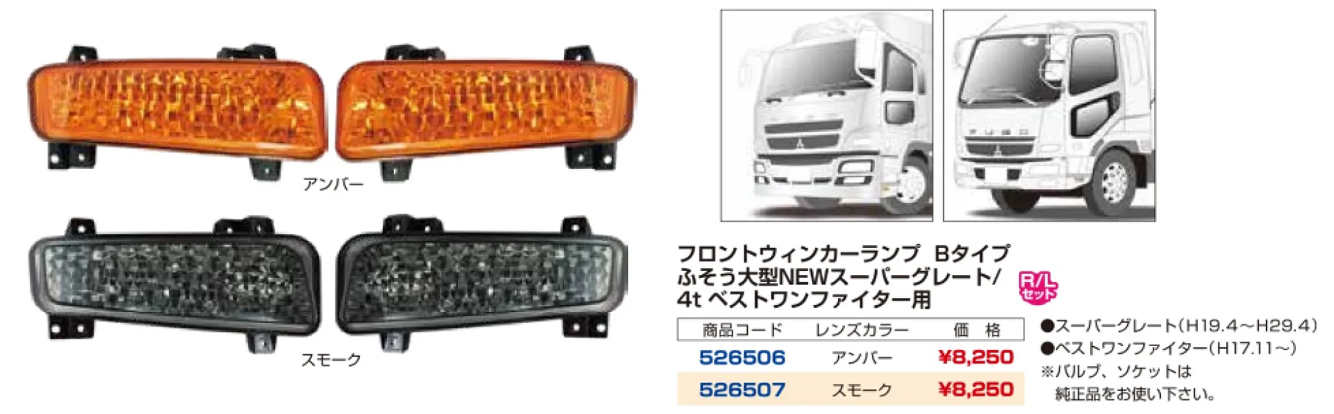 プロフィアテラヴィタイプバンパー 4t車~大型車用 ウィンカーランプ R/Lセット 502410