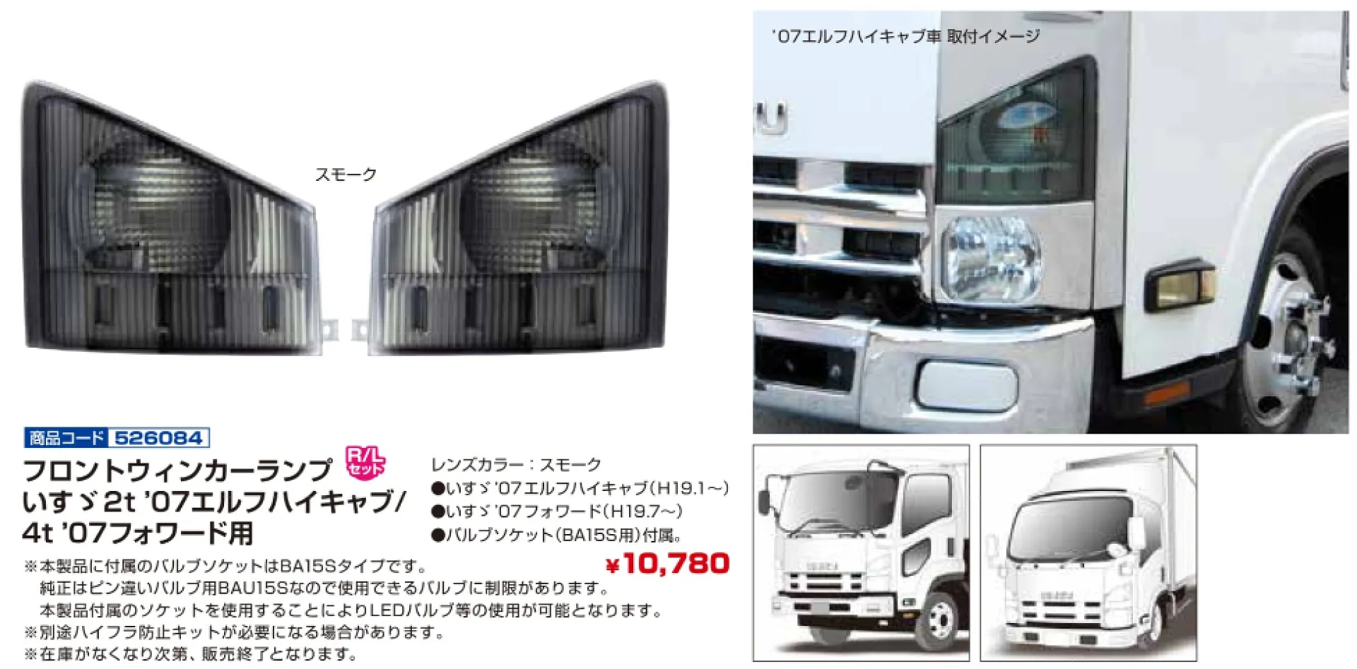 ドアサイドマーカーランプカバー 526198 いすゞ2t’07エルフハイキャブ / 4t’07フォワード用 R/Lセット
