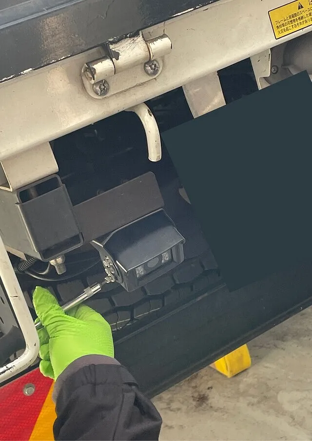 平ボディの車両だったので配線は下から通して後ろまでもっていきカメラ本体とつなぎます!