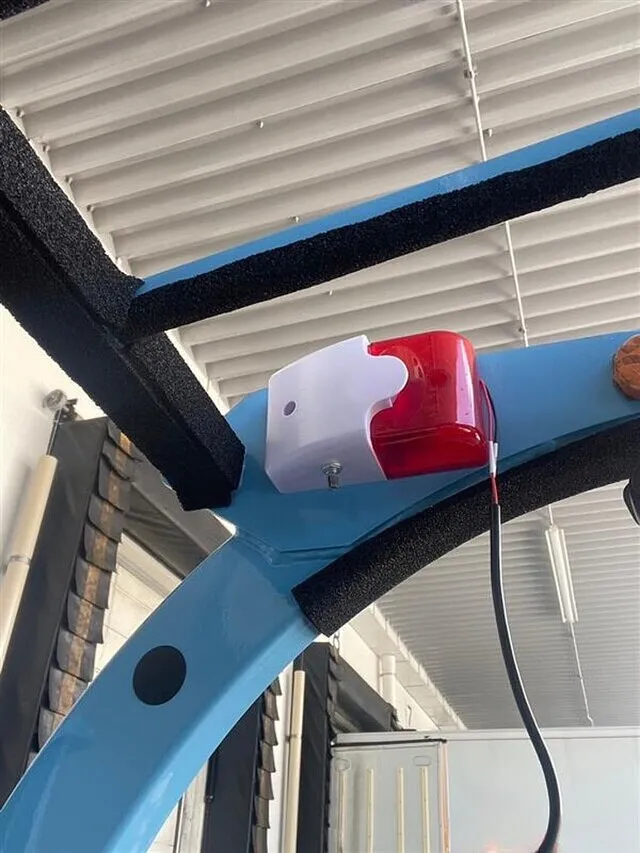 お客様のご要望により運転席からすぐにわかるようヘッドガード下のフレームに取り付けました。