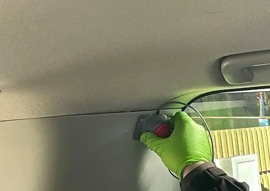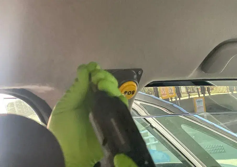 今回取り付けるSOS-0006(車内置き去り防止システム)は車内に取り付け、車内後方まで移動させ強制的に車内確認を習慣化させる装置となっています!