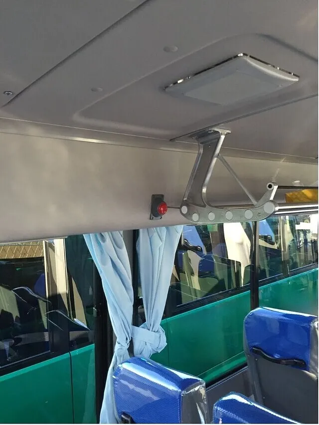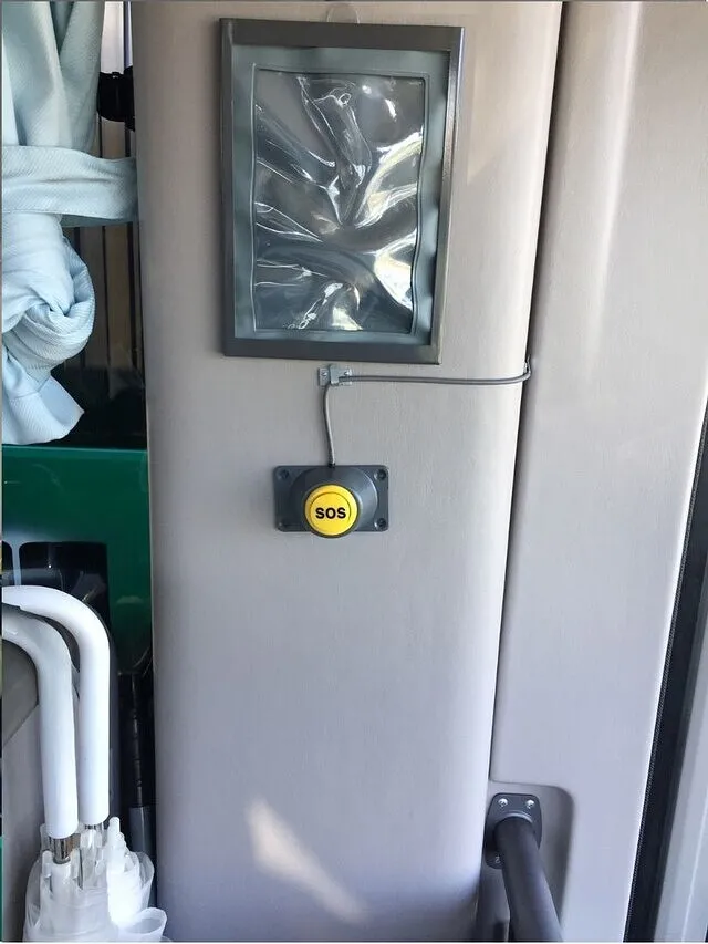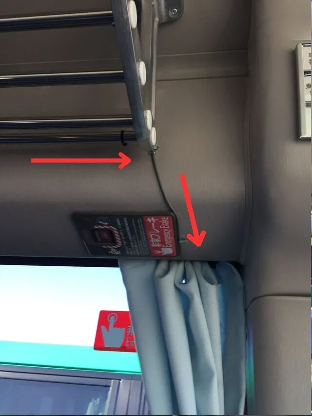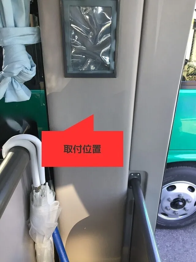下車確認ボタン(赤)は車内後方左側に取り付け、非常ボタン(黄)は降車口付近に取付けていきます!