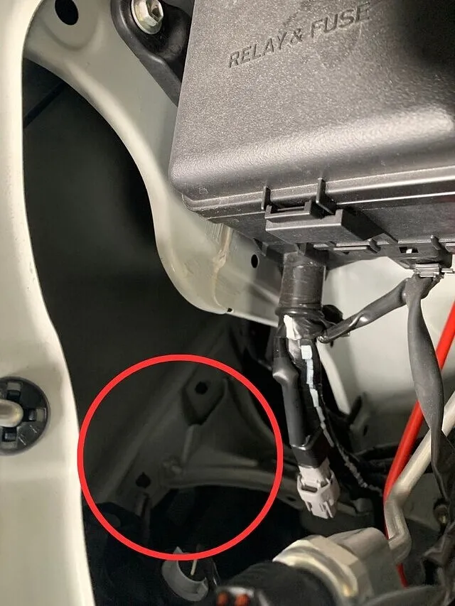 車外警報機はボンネット内部に既存のボルトを使用しこていしました!