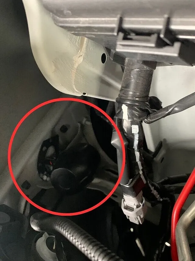 配線はカバーを取り付け後、ボンネット内のグロメットより車内のグローブボックス裏に通しました!