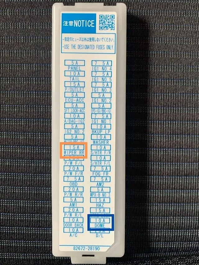 電源は常時電源がDOMEのヒューズ、イグニッション電源はWIPER RRのヒューズよりとっています。