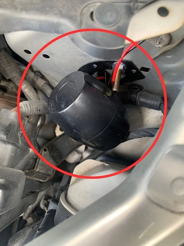 車外警報機はボンネット内部に追加のボルトを使用し固定しました!