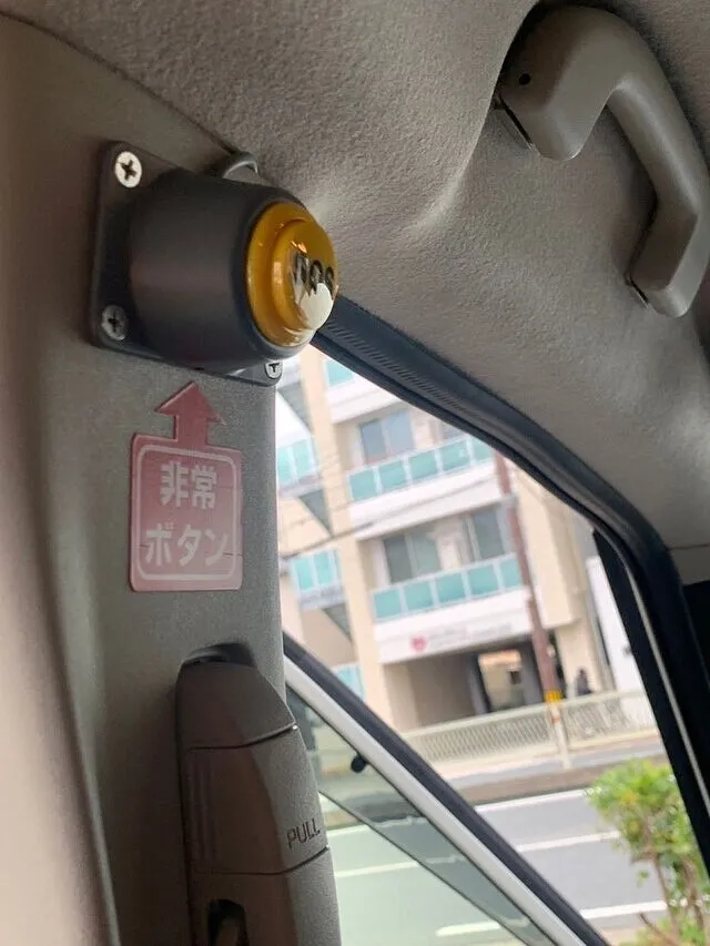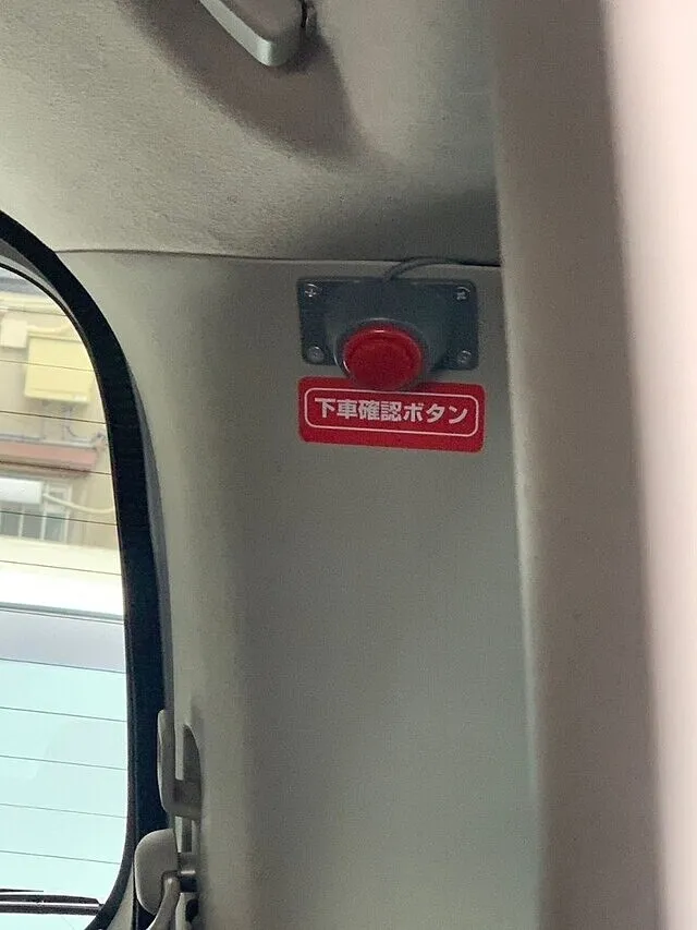 ・警告音が下車確認ボタン(赤)を押すと止まる。